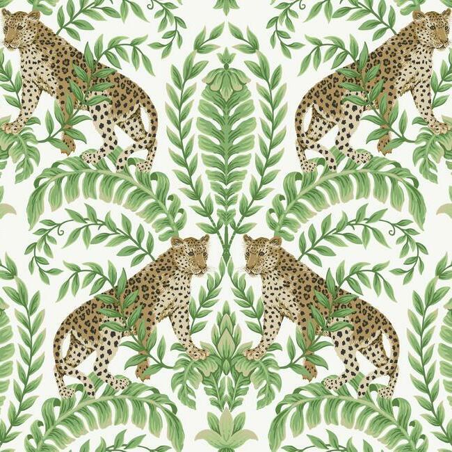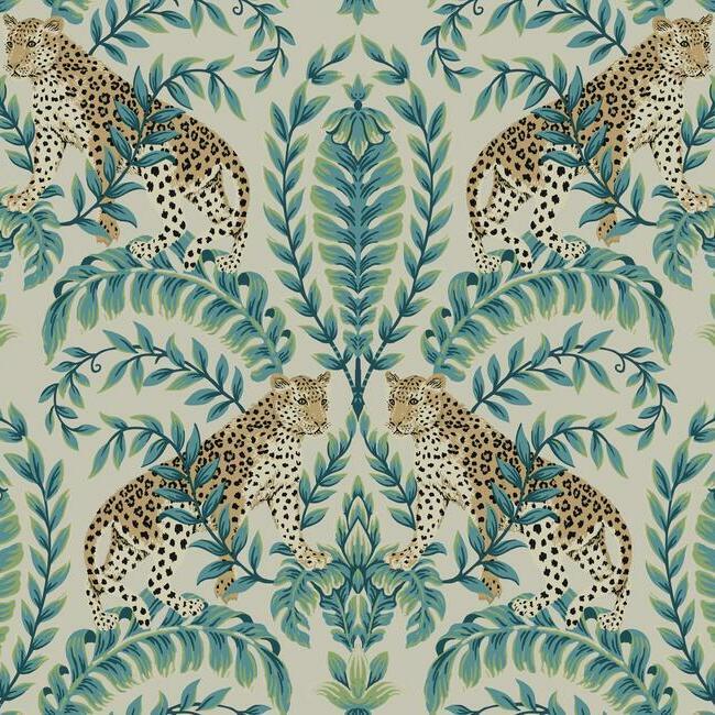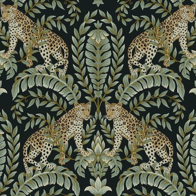 Jungle Leopard's proud felines stand watch amidst lush acanthus leaf medallions in this fresh take on the exotic animal motifs of traditional style. Ronald Redding wallcoverings artfully blend heritage design with innovation to achieve the luxury of Modern Traditionalism. The 24 Karat collection exemplifies this blend of quiet sophistication and fine quality with the glamour of modern urban living.