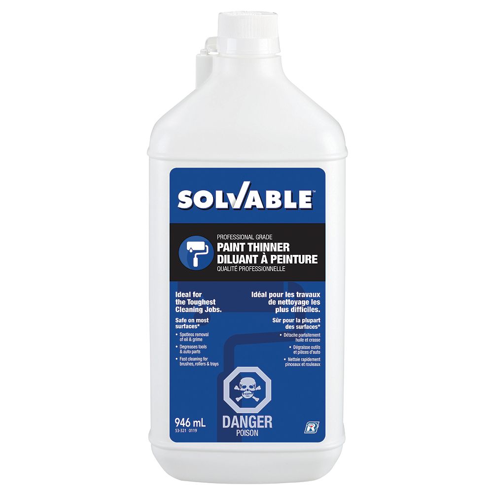 Solvable Professional Grade Paint Thinner containing Mineral Spirits helps remove & clean tough stains, grease, grime, dried paint, sap, crayon, wax, glue, sticky residue & more for a professional performance every time.